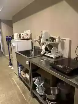• A communal kitchen is available with basic appliances like a microwave, refrigerator, and kettle, as well as a shared dining table. This makes it easy to buy food from convenience stores and prepare your own meals.