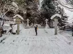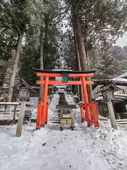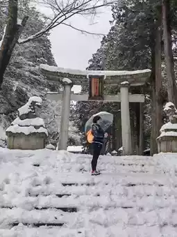 Stepping into the shrine, I was instantly awestruck! The snow-covered torii gate and stone steps are exactly like in the anime. It's recommended to come in the early morning when there are fewer tourists, and you can witness the stunning scene of morning light piercing through the cedar trees 🌅