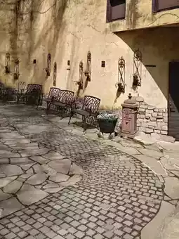 The grounds are lined with churches, shops, and restaurants, and there are plenty of experiences such as princess experiences (dress rental) and snow globe making.