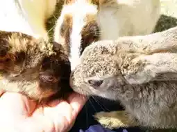 ⇒ The rabbits were once brought to the island, but they have become wild and thrived, and now you can be surrounded by rabbits that are accustomed to humans.