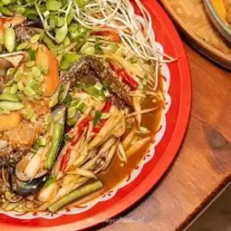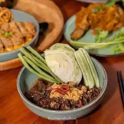 Doi Talay ✨🌶️ Northern-Isan food restaurant, spicy in Khao Lak area. On this trip to Khao Lak, Phi Jeans found a very delicious and spicy restaurant. 😋 The shop is located in Soi Bang Niang. Drive almost to the end of the alley, there is a parking lot. The atmosphere of the shop is very inviting. Those who like to sit and relax can choose to sit on the floor or on cushions for a different feel. Or you can sit at an air-conditioned table. Let's start with northern food. • Doi Talay Khantok, very full, comes with Nam Phrik Num, Nam Phrik Ong, along with Sai Ua, Moo Yor, Naem, and Pork Rinds for dipping. • Khao Soi Moo Thot, this is Phi Jeans' favorite menu. Comes with complete side dishes. • Laab Kua Jao, this dish is also delicious. It has a slight scent of makhwaen. • Turmeric Chicken, the chicken meat is very tender, followed by the spiciness of Isan food. • Tam Platter Seafood, oh my, I have to say that the fermented fish is very delicious. And it comes in a very big plate. You have to dip sticky rice in the fermented fish sauce with it, it's so spicy. • Pork and fermented fish set Dipping it with fermented fish sauce is really delicious. Grilled beef with jaew sauce is also excellent. Anyone who comes to the Khao Lak area and wants to eat fusion food from the North and Northeast, I recommend that you stop by here. ⏰: 11:00 a.m. - 10:00 p.m. Closed every Thursday —————————#Doitalay #Doitalay #khaolak #Phang Nga restaurant review #journeycallsofficial #Get a discount without relying on luck