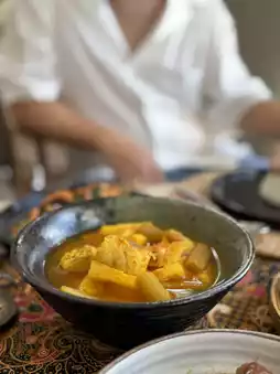 Not only savory food, the recommended dessert is “Saku Kati”, a simple Thai dessert that stands out with the sweet and creamy coconut milk and the soft texture of sago pearls, allowing you to end your meal perfectly.