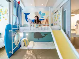 This time, Nuch stayed at the water park side. We got a Family room. The room is very cute, suitable for the whole family. This room also has a baby bed.
