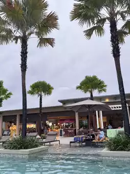 A beachfront resort with an excellent atmosphere! The resort features two swimming pools, which are a hit with kids, especially with the fun slides. The pools meet standard depth requirements, ensuring safety. The ambiance is delightful, and the rooms are clean and well-designed, with a great separation between the bedroom and bathroom areas.