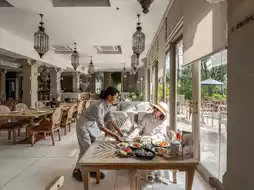 As the soft morning sunlight starts to filter through the windows, the warm colonial-style restaurant serves a quality breakfast, including freshly baked croissants, tropical fruits, healthy salads and large Western-style dishes, all carefully prepared.