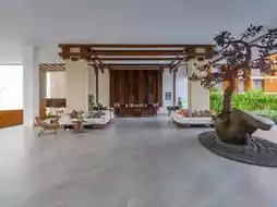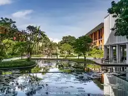 🪷 Start your impression from the first step with a lotus pond that reflects the image of a modern, elegant building. Under the architecture that blends with nature The open and airy lobby welcomes you with contemporary woodwork and magnificent organic art.