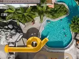 🌴 This resort is surrounded by greenery. There is both a large swimming pool with colorful slides for families and a quiet pool for adults with class.