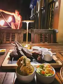 🌴 Delicious food at both Takola Thai restaurant and Devasom Beach Grill & Bar. We tried the Dinner Set: Gaucho Night (available only on Saturdays), which included a fire show and perfectly grilled A4 beef. 💸 3,700฿