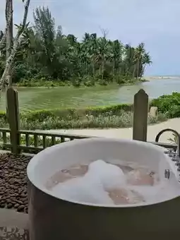 🌴 We stayed in the Seaside Junior Suite with Jacuzzi, offering views of the lagoon and the sea. Foam service is available, and you can choose to use the indoor or balcony tub.