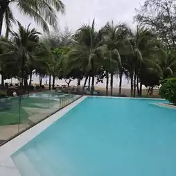 Atmosphere: This 5-star hotel boasts a spacious grounds and a full range of amenities, including a spa, fitness center, cafe, restaurant, and skating rink. Upon arrival, staff will assist you with your luggage and take you to the lobby. The lobby area features a souvenir shop and a viewpoint overlooking the hotel's swimming pool, a highlight. The guest rooms are separated to the left and right of the lobby. Each zone features a large swimming pool, parallel to the guest rooms. Walking to the back of the hotel, there's a triangular tunnel under the pool, leading to the beach. The beachfront area features a bar, beach chairs, kayaks, and paddle boards for guests seeking water activities.