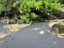 The highlight here is the black sand. They say it's derived from the local tin ore, giving it a distinct color that's unlike most beaches. However, it was raining and the tide was high on the day we visited, so we didn't see much black sand. Nevertheless, the atmosphere was peaceful, quiet, and incredibly beautiful.