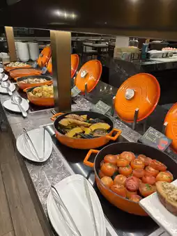 The food selection is extensive, offering a variety of stations: