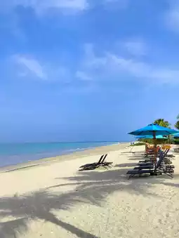 This beachfront resort boasts a beautiful beach and the perfect weather. The beach behind the resort is perfect for swimming, and there's a beautiful swimming pool.