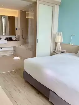 A large resort located on Bang Sak Beach. This tropical-style resort features a large swimming pool that runs the length of the hotel. Every room has a view of the pool. This time, I stayed in a deluxe room. The room was divided into two zones: a lounge area and a sofa bed for relaxing. The balcony offers a relaxing view of the pool. The room has a bathtub and a spacious bathroom. From the room, you can walk to Bang Sak Beach and the beach for swimming. Breakfast offers a decent variety. However, the staff are mostly foreigners, with few Thais, which makes the service a bit disappointing. Overall, the service was okay.