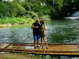 We drove 40 minutes to KOMOL'S CORNER BAMBOO RAFTING, paid 1,200 baht for two people, and enjoyed a 40-minute bamboo rafting experience. It felt like an adventure through the jungle, complete with snakes in the trees. It was thrilling and highly recommended! The photos turned out amazing, and we were very satisfied.