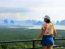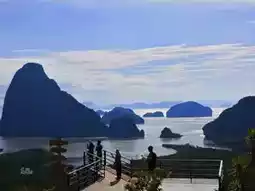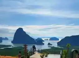 🚩 This viewpoint is located in Ban Samet Nang Chee, Khlong Khian Subdistrict. It is a viewpoint on the top of an 800-meter high mountain, allowing you to see the beautiful nature in Phang Nga Bay as far as the eye can see. There is a parking lot and a shuttle service. The fee is 90 baht per person (the route is quite high and steep). However, if you walk up by yourself, there is a 30 baht maintenance fee per person.
