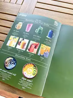 The menu offers a wide selection of drinks, desserts, and food at reasonable prices.