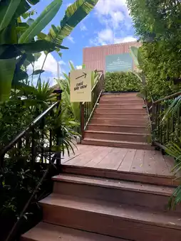If you're in Phang Nga, I highly recommend this cafe. It's a million-dollar view cafe with a beautiful atmosphere, but the climb up is a bit steep. To get there, park your car at the Samet Nang Chee Boutique Hotel parking lot. There's a ticket for 150 baht per person, and a shuttle will take you up to the cafe. You can't drive your own car up the steep road.