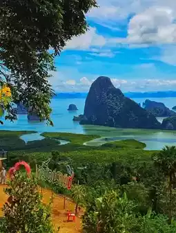 This elevated viewpoint offers a stunning view of Phang Nga Bay. At the top, there is a coffee shop, a made-to-order restaurant, and plenty of beautifully decorated photo spots.