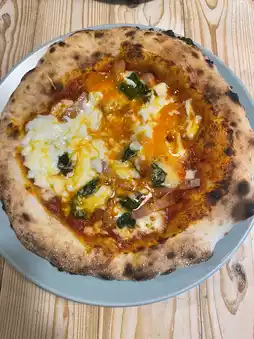 This pizza, said to have a shelf life of just 5 minutes, is baked in a stone oven, giving it a chewy texture and an exceptional taste!