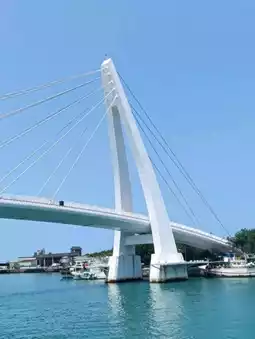 Tamsui Fisherman's Wharf is located on the right bank of the Tamsui River estuary in Tamsui District, New Taipei City. It is famous for its sunset glow. Formerly known as Tamsui Second Fishing Port, it was started in 1978 and completed in 1987. It has a land area of about 15 hectares and a water area of about 11 hectares, totaling 26 hectares. There are many art installations in the area that are great places to take photos and check in. The most popular place for couples is the white Lover's Bridge. The poetic name is coupled with the Tamsui Twilight, which is known as one of the eight scenic spots in Taiwan. The combination of the bridge and the twilight adds a romantic atmosphere to the area.