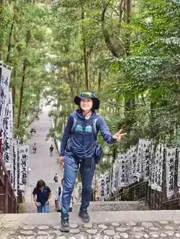 Today's destination is Kumano Hongu Taisha Shrine, a World Heritage site. It's the core sacred site of the Kumano Sanzan and a symbol of faith. Arriving with a sense of accomplishment, we finally set foot on a sacred site considered sacred by many pilgrims!