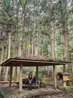 This was once a rest stop for pilgrims, but now only the ruins remain. We stopped for a snack 🍫 and met two hikers coming from Koguchi. We exchanged cheers and continued on.