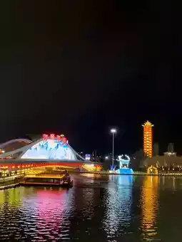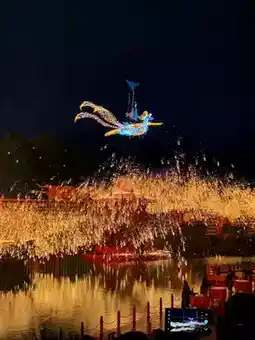 🌟Hetou Old Street: This was the highlight of the trip. The old street isn't particularly large, but there are many shops along the river, and the scenic area also has many activities. It's worth a visit. I went in around 4:00 or 5:00 PM, strolled around, and then watched the "Tang King's Eastern Expedition" performance at 6:30 PM. I highly recommend the performance. The molten iron fireworks were spectacular (see my previous post for details). The scenic area looks beautiful after dark, and it really does feel like a "Tang Dynasty City That Never Sleeps" on the water. It even snowed on Saturday, which made watching the fireworks even more special. I lined up to buy Xiaoshan Fried Cakes in the scenic area. The red bean flavor was quite delicious.