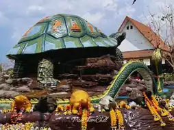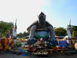 #TravelChat For those interested in spiritual merit-making and those visiting Sakon Nakhon, don't miss making a wish at Phaya Tao Ngoi, a sacred site renowned for its good fortune offerings to Sakon Nakhon residents and tourists. Phaya Tao Ngoi is a large turtle statue located on the banks of the Nam Phung River in a public park in the district of