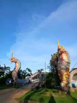 #GetDiscountsWithoutLuck Phaya Tao Ngoi, located in Tao Ngoi District, Sakon Nakhon Province, is a must-see landmark when visiting Isan. It's not just a tourist attraction, it's also a place of worship where many people come to pay homage and seek blessings. Inside the grounds, a large statue of Phaya Tao Ngoi stands majestically on the banks of the Nam Phung River. This exquisite and beautiful sculpture has become the symbol of Tao Ngoi District. Tourists often come here to pay their respects and pray for blessings, particularly for luck and business. The surrounding atmosphere is bustling with activity, with many souvenir shops and local products. #PhayaTaoNgoi #VisitSakonNakhon #SakonNakhon #sakonnakhon #thailand
