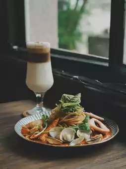 For the meals, the portions are really plentiful! This time I ordered stewed rice and spaghetti. The taste of the stew was Taiwanese, the rice core was a little too soft for me, but the seasoning was rich with milk, which was excellent. The Tang Yang chicken was even more juicy and delicious, a complete highlight.