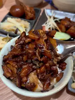 To complement the main dish, the set also includes a serving of handmade minced pork ball soup and sliced fish soup. Each soup is brimming with delicate, wholesome flavors that add layers of depth to the meal. The minced pork ball soup, with its tender meatballs, is rich and comforting, while the sliced fish soup brings a lightness to the dish, offering a refreshing contrast to the braised pork rice. These soups are a perfect reminder of the heartwarming quality of traditional Taiwanese cooking—simple, yet expertly executed with top-tier ingredients.