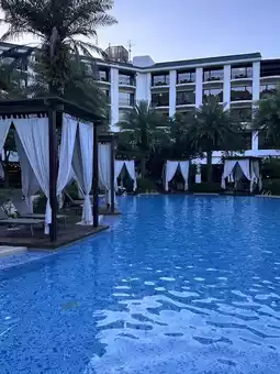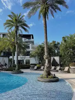 When the sun is shining, the blue pool water shines like inlaid with broken diamonds💎 Surrounded by the shadow of coconut trees, lying into the pavilion with curtains, closing your eyes and listening to the laughter and teasing in the swimming pool, thinking that you are flying to Nanyang for vacation ~
