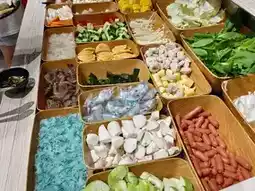 There’s a wide variety of ingredients, including rare options like black tripe and white tripe. Vegetables and hot pot ingredients are available in the self-service area.