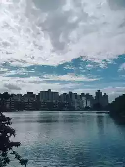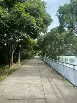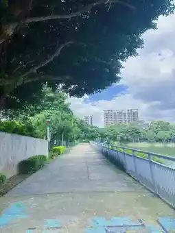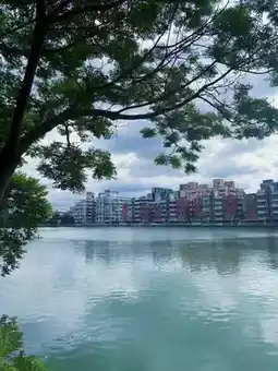 Entering the pond area through a small path beside the residential district, you'll find yourself in an open and refreshing space. The wide walkway runs alongside the water, with orderly buildings on one side and a picturesque blend of lake views and tree shadows on the other. Walking here feels like stepping into a serene gap between urban life and greenery, instantly calming the mind.