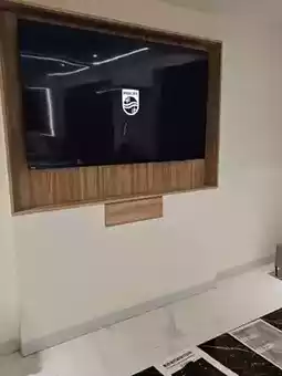 Entertainment options: 65" 4K TV with streaming platforms and mobile screen mirroring, creating a private cinema experience.
