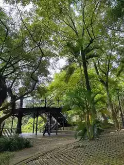 The most eye-catching thing in the park is the "Owl Tree House Observation Deck" hidden between the big trees. The entire platform is built along the old trees, as if walking into a fairy tale book. Symmetrical stairs on both sides lead to the sky. The wooden steps are combined with black iron railings, and the green leaves all over the sky make walking up very ceremonial!