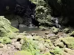 An easily accessible energy spot surrounded by greenery and waterfalls, perfect for relaxing or taking a break during your journey.
