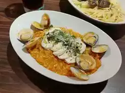 The rice grains in the risotto have a great texture, and the sauce is well-reduced, locking in the flavors. The chicken is tender, and the clams are large. Adding a bit of spice enhances the taste—highly recommended! ✅