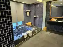 The rooms are spacious and cozy, designed for comfort with large windows that frame the garden views beautifully. Guests can unwind at the hot spring area, take a dip in the outdoor pool, or stroll through the landscaped gardens that change colors with the seasons. The on-site spa adds a touch of luxury, offering massages and wellness treatments perfect after a day of sightseeing around Taoyuan or Daxi Old Street nearby.