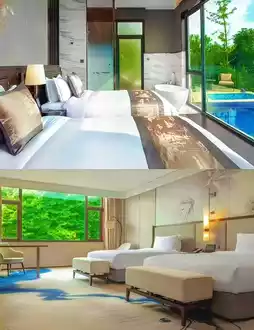✅ Luxury Villa: A two-story private villa with a hot spring pool. Kids can doodle on the Great Wall-themed wall—perfect for birthday parties!