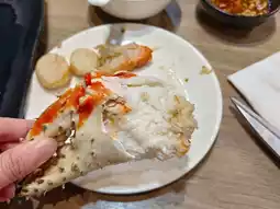 The steamed giant king crab legs are served per person, and you can only reorder after finishing your portion. The size is so large that I could only manage one leg 🤣