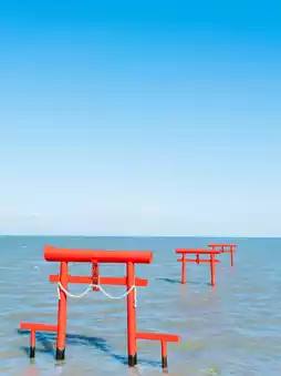 The three torii gates floating in the sea of Tara Town, also known as the "town where you can see the gravity of the moon," are a truly mystical and spectacular sight...✨