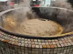 As soon as you arrive, you are overwhelmed by the scene of plov being cooked in five large pots at the same time.