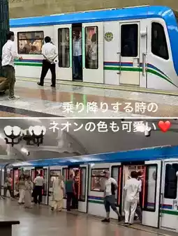 When you get on and off the train, the entrance to the train glows with green and pink neon lights, so it is a must-see😍