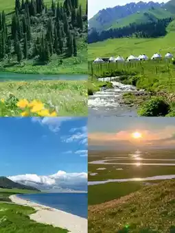 1. Kanas Scenic Area: Known for the mysterious lake monster legend, the lake’s color changes frequently. Moon Bay, Wolong Bay, and Fairy Bay are stunning, especially in autumn like a fairy tale. First go to Jiadengyu, take the shuttle bus into the area, visit Wolong Bay, Moon Bay, Fairy Bay in order, and you can also take a boat or hike to the fish viewing platform. It’s crowded in peak season with long shuttle lines, so enter early, book accommodation in advance, and don’t trust ads about lake monsters.