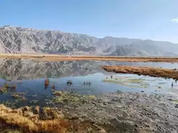 The Taxkorgan River meanders through the area, nourishing this vast wetland spanning 100,000 acres. In the distance, snow-capped mountains stand against blue skies and white clouds, while nearby, the golden grassland spreads like a carpet, accompanied by the historic Stone City ruins. Together, they form a magnificent idyllic pastoral symphony of the plateau. This place is not only an ecological treasure but also an ideal location to witness the sunset over Muztagh Ata Peak.