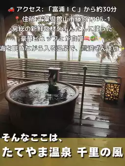 ♨️ Tateyama Onsen Senri no Kaze (Chisato no Kaze) ♨️ Tateyama Onsen Senri no Kaze Located in Tateyama, the southernmost tip of the Boso Peninsula, **Senri no Kaze** is a relaxing hot spring inn where you can enjoy ocean views and the bounty of Minami Boso. ✨ Refresh your mind and body with sunsets over the ocean, fresh seafood, and a relaxing hot spring. 🌊🌅