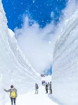The soul of Tateyama Kurobe lies in its breathtaking snow walls. Every winter, due to the high altitude and heavy snowfall βοΈ, thick snow accumulates here. Every year in November, the mountains close, and they remain closed until they reopen in April of the following year. As the temperature gradually rises in spring, the snow begins to melt, leaving behind huge snow walls, tens of meters or even twenty meters high, on both sides of the road. Walking between them is like being in a white time tunnel, with a strip of blue sky overhead and towering walls of ice and snow on both sides. Every step is accompanied by awe and admiration for the power of nature.