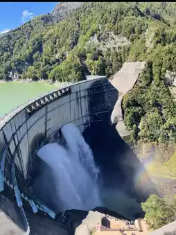 A fusion of nature and technology 🌈 Experience the spectacular water discharge at Kurobe Dam